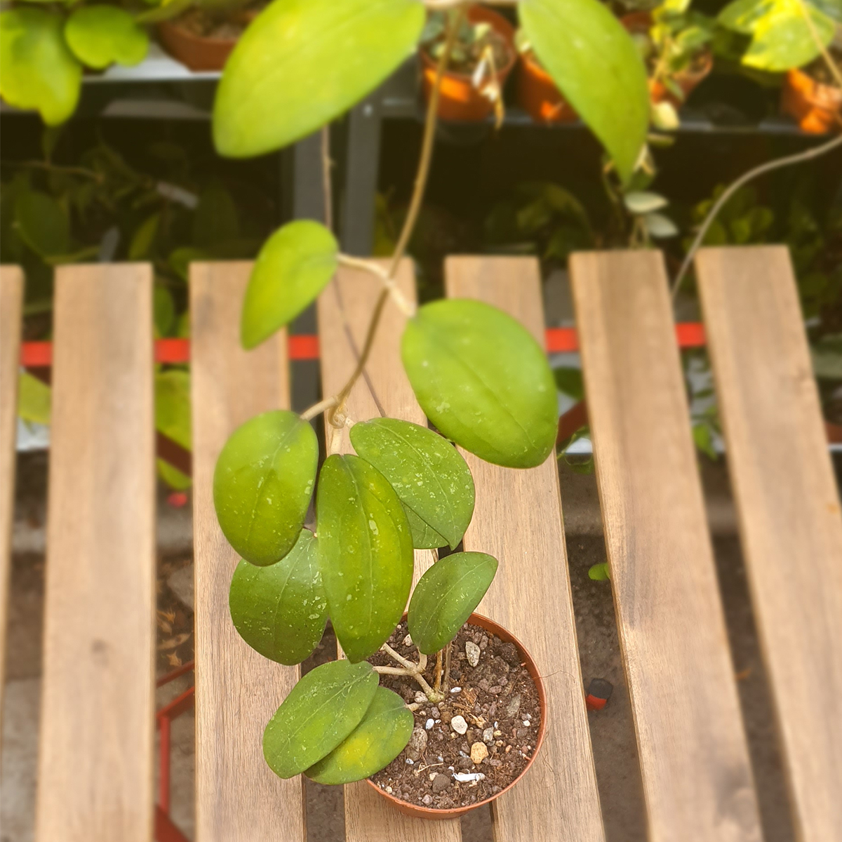 Le Hoya Affinis est une espèce botanique remarquable, connue pour ses grandes fleurs étoilées rouge profond à bordeaux, brillantes et charnues, contrastant avec un feuillage vert classique. Son port vigoureux et sa floraison intense en font une plante spectaculaire pour les amateurs de Hoyas florifères.