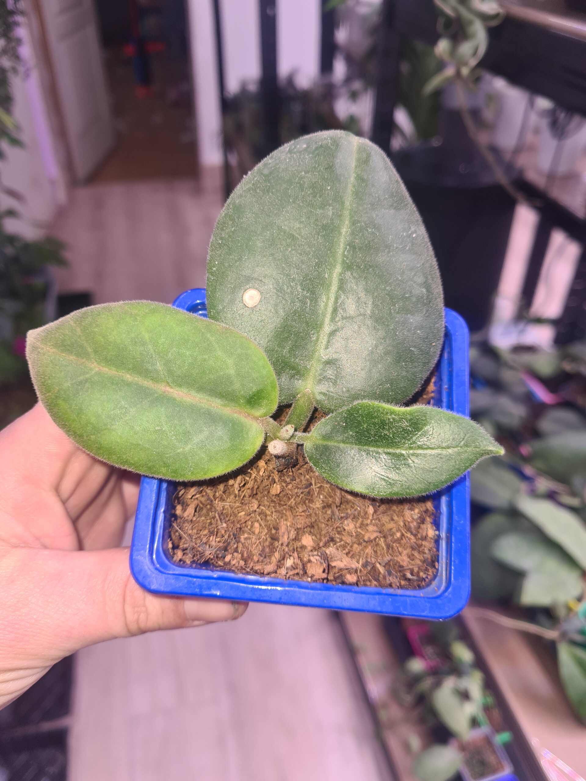 Le Hoya Calycina ‘Stargazer’ est une plante tropicale vibrante, offrant une floraison intense et très parfumée, idéale pour illuminer une collection de Hoyas. Facile à cultiver et spectaculaire à fleurir, elle ravira les amateurs de plantes fleuries et colorées.